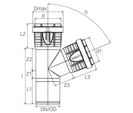 PP Master3Plus T-stuk 67.5° 110-75 Mof/Mof/Spie SN4 Zwart